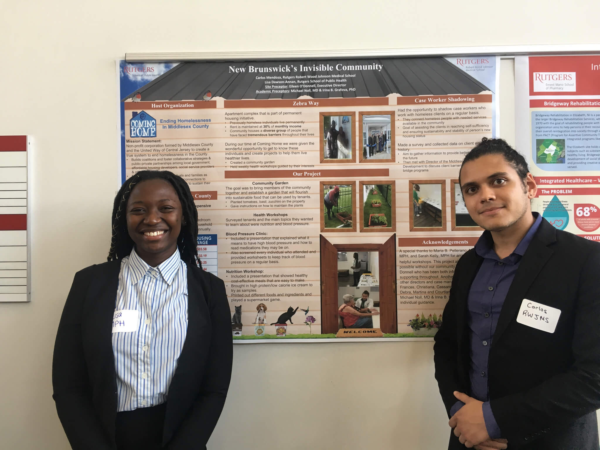We hosted two delightful and resourceful Rutgers students – Carlos from the medical school and Lisa from the school of public health – as part of the RU Bridging the Gaps program for 6 weeks this summer. The students got the opportunity to address the “social determinants of health” that the medical community has recently acknowledged. They helped the residents of Zebra Way plant a vegetable garden and provided interactive instruction in nutrition and the health issues of interest to the residents.